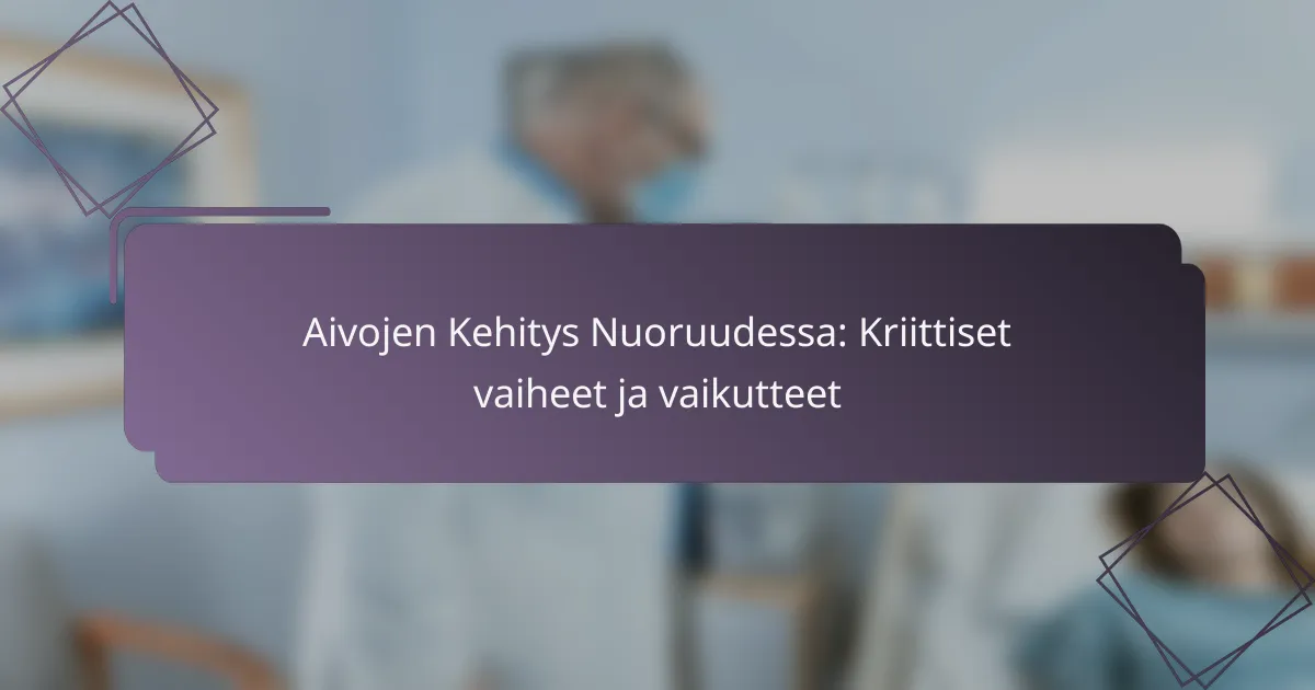 Aivojen kehitys nuoruudessa kattaa useita kriittisiä vaiheita, jotka vaikuttavat nuoren kognitiivisiin, emotionaalisiin ja sosiaalisiin kykyihin. Ympäristö, geneettiset ominaisuudet ja sosiaaliset…